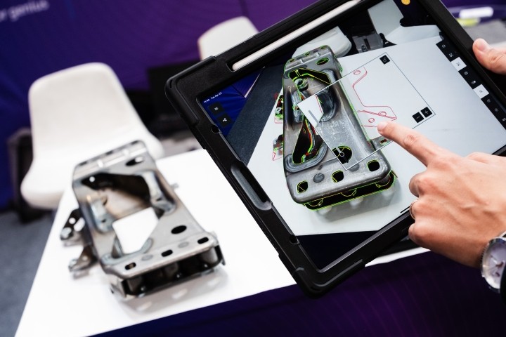 SuPAR AIなら、3D CAD×ARで現物に打点位置を重ね合わせ、AIが自動でOK/NG判定