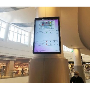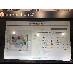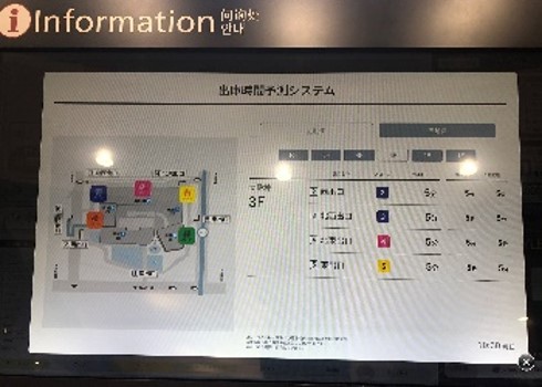 館内のメイン通路や風除室にサイネージを設置しどこにいてもすぐ渋予測時間を確認できるようになりました。