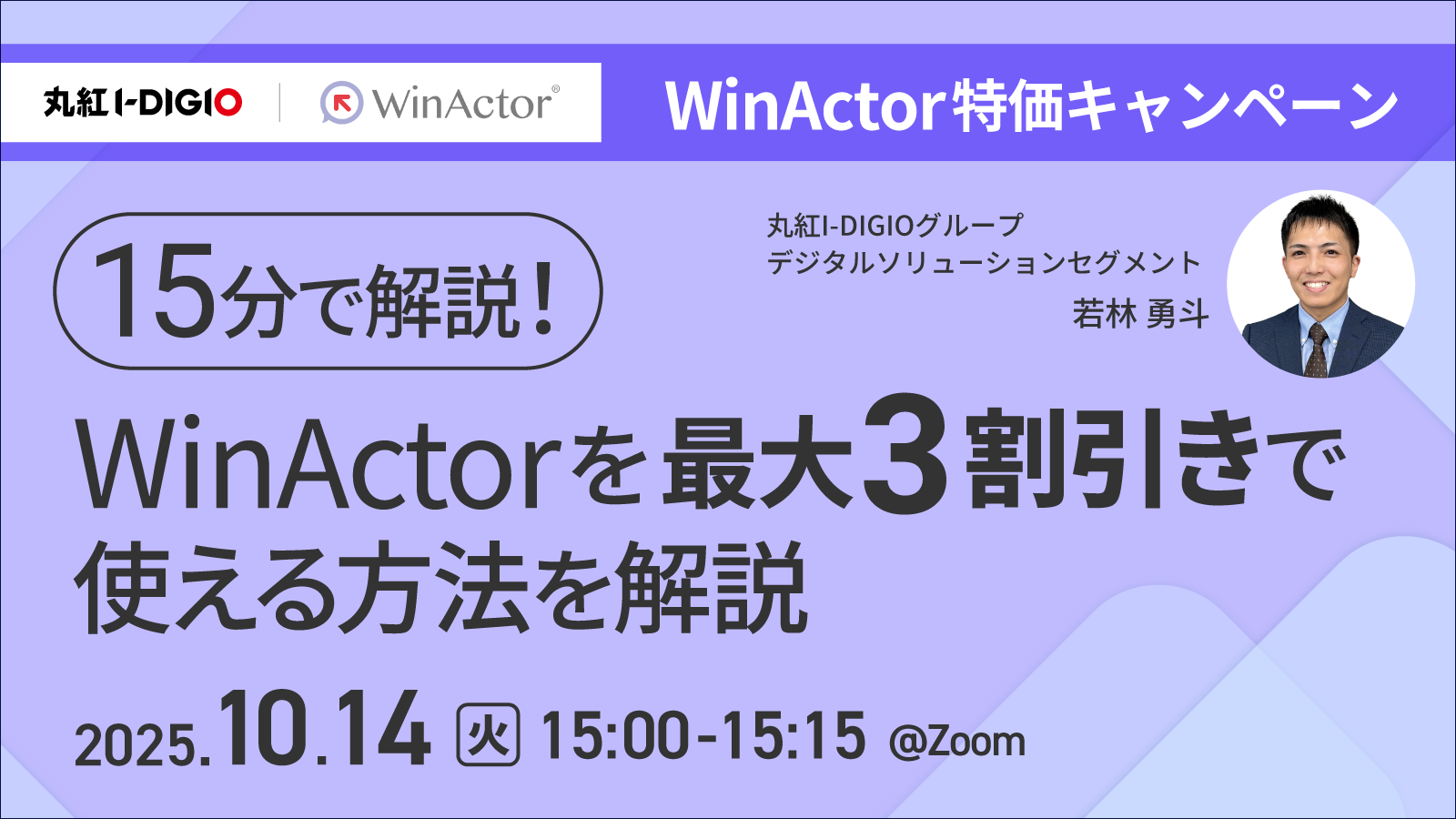 本ウェビナーでは、2025年10月から開始するWinActorライセンス割引キャンペーンの実施概要についてわかりやすく15分で解説します。