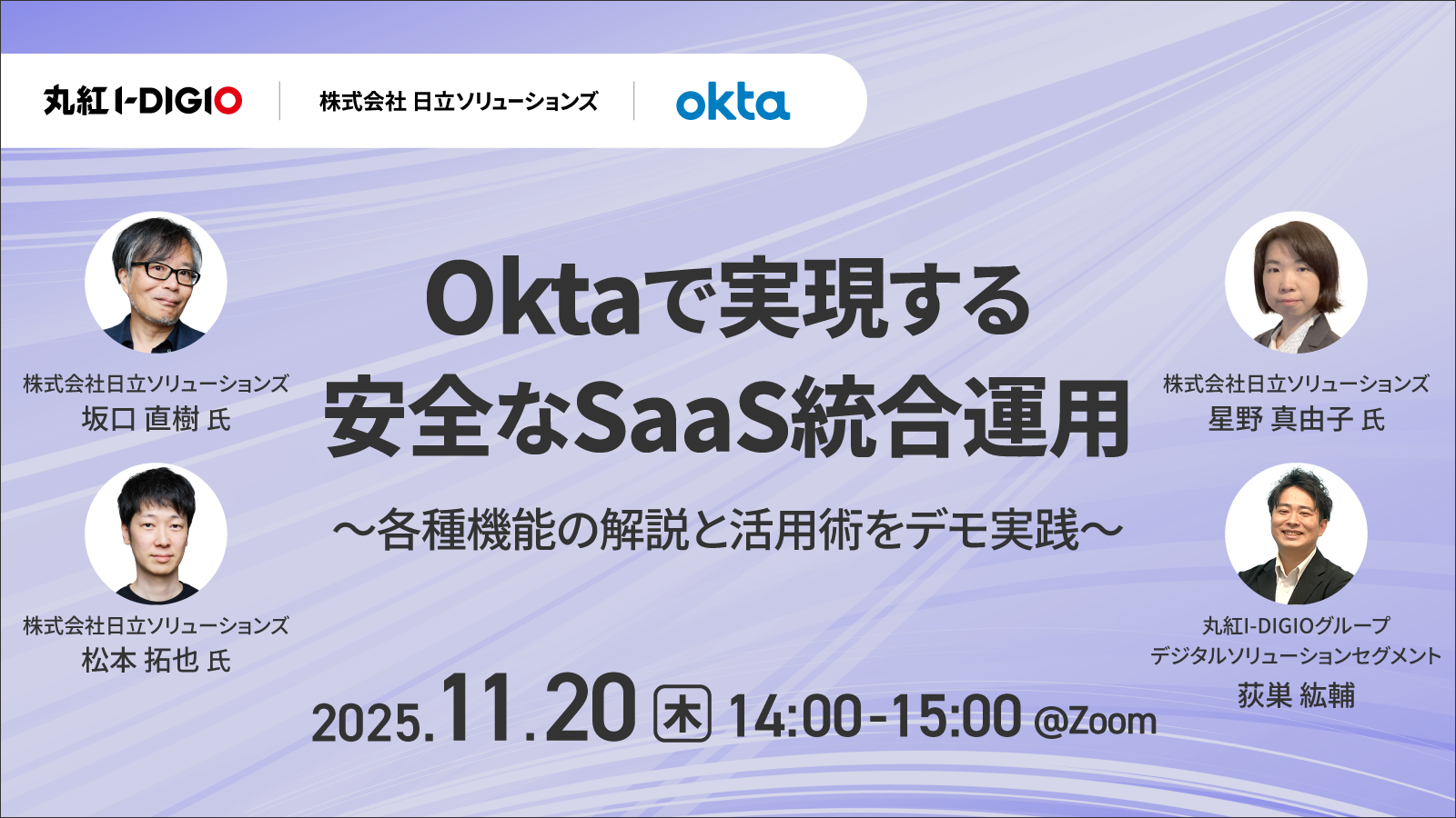 本ウェビナーにて、Oktaによるアプリ横断のSSO、適応型MFA、入社・異動・退職に合わせた自動プロビジョニング/デプロビジョニングで、ID管理を効率化する実践法をデモを交えながら分かりやすくご紹介させていただきます。