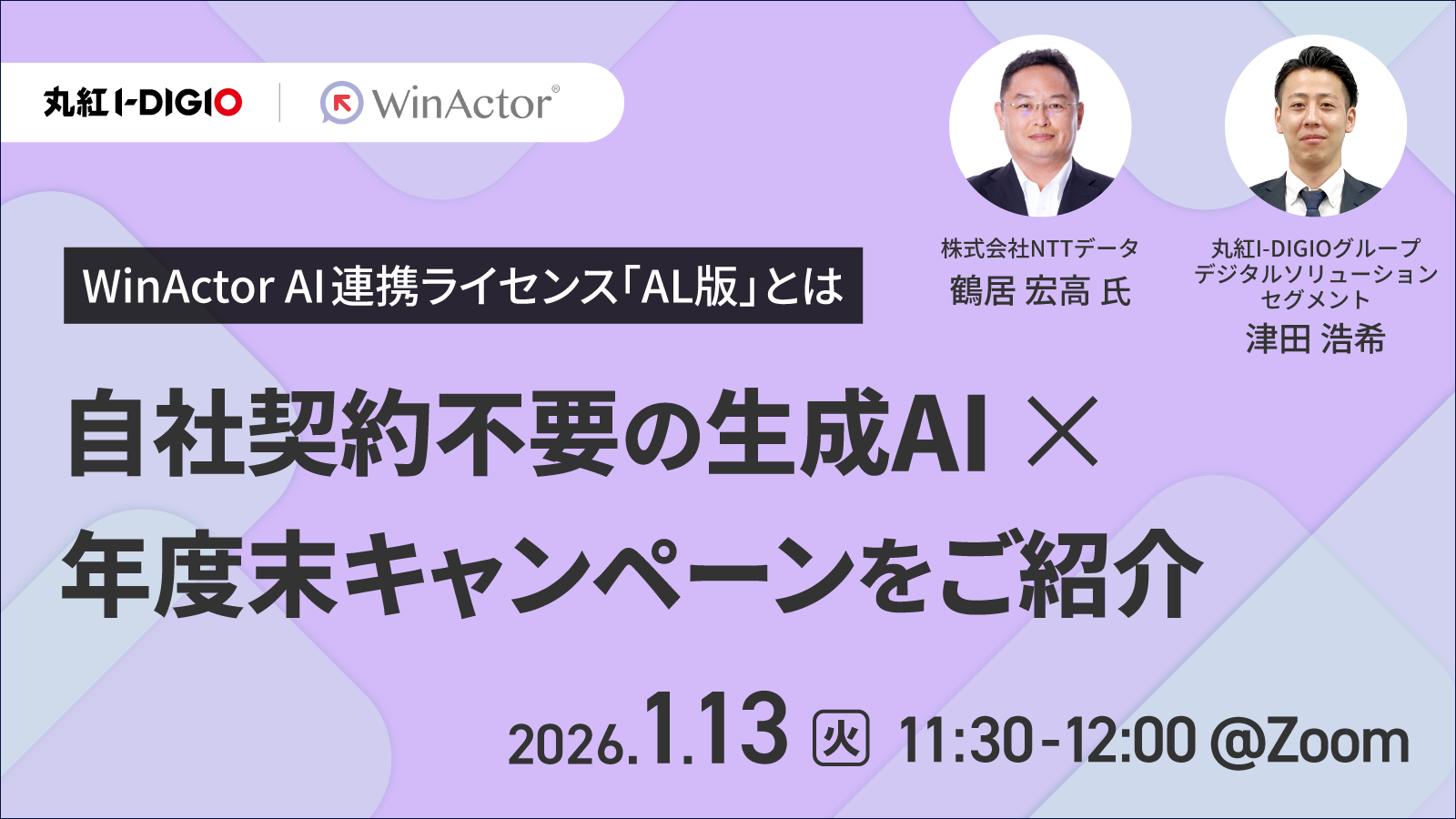 ※11月13日開催のウェビナー「WinActor AI連携ライセンス「AL版」とは|自社契約不要の生成AI×年度末キャンペーンをご紹介」と同様の内容です。