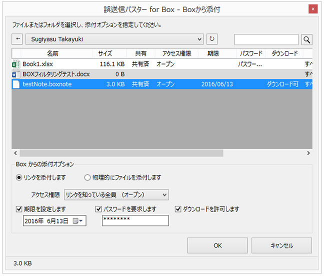 - Boxで管理しているファイルのメール添付