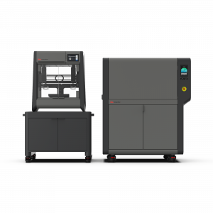 2018年より取り扱ってきた従来の「Studioシステム+」は、金属粉末と熱可塑性のバインダー(結合樹脂剤)を混合した材料を積層して造形するFDM方式(熱溶解積層方式)の「金属3Dプリンター本体」と、バインダーを脱脂する「デバインダーステーション」、高温で金属粉末を溶融結合させて焼結体をつくる「ファーネス(焼結炉)」の3つの機器でシステム一式を構成するシステムでした。Studio システム 2は、Studioシステム+の後継機で、バインダーの脱脂と金属粉末の溶融結合をファーネスの1ステップで実現し、デバインダーステーションを必要とせず、造形、焼結の2ステップで完結できることが最大の特徴です。脱脂時の溶剤使用が導入障壁になっていた企業・団体でも採用可能なシステムです。