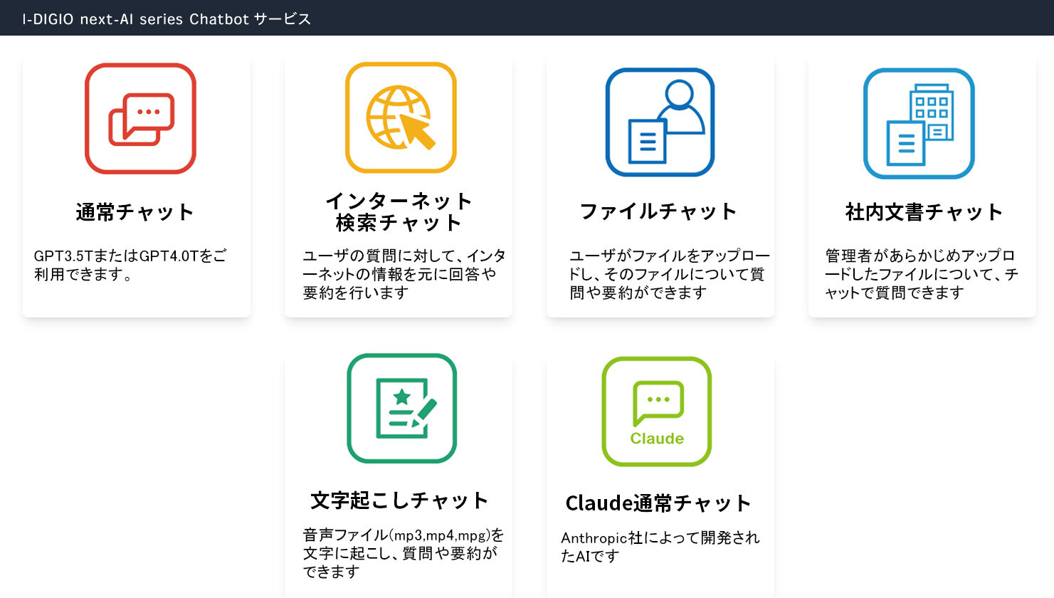 ■ I-DIGIO next-AI series Chatbot サービス紹介サイト