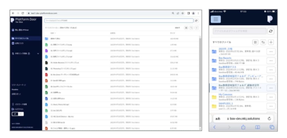 ▼Platform Door for Box実画面:PCでもモバイルでもブラウザでBoxにアクセスできます