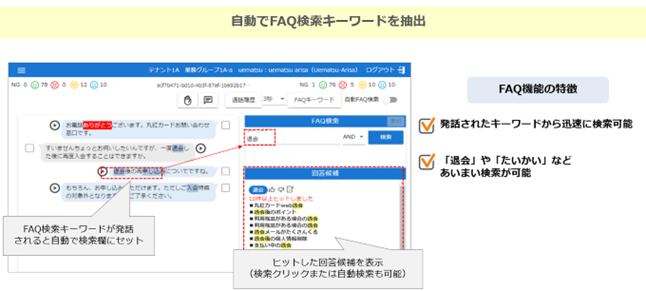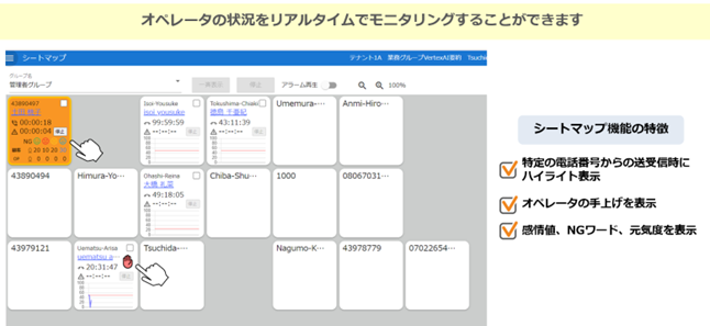 「Omnis」は通話音声をリアルタイムでテキスト化し、その内容を生成AIにより要約する機能を搭載しています。これにより、応対履歴の入力業務やVoC(Voice of Customer:お客さまの声)の登録業務など、従来オペレーターが終話時に手作業で行っていた後処理業務を簡略化・効率化するとともに、記録内容の標準化を実現いたします。また、テキスト化された通話内容に基づき、関連する社内マニュアルを瞬時にオペレーターに提示することで、お客さまへの正確かつ迅速な回答をサポートし、応対品質の一層の向上および均質化を図ってまいります。さらに管理者は、通話時のお客さまの感情値などの参考指標が表示されることから応対状況をリアルタイムでモニタリングすることが可能となり、迅速なサポートや感情分析を通じた応対品質の可視化、コミュニケーションの円滑化にも貢献いたします。