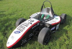 全日本学生フォーミュラ大会は2003年から「ものづくりの機会を与えること」を目的にスタートした大会で、大学や高専などのチームが、自分たちでつくったオリジナルフォーミュラカーをもち寄り、タイムアタックのほか、軽量化や燃費など独創性も競い合う競技だ。2011年は75ものチームが参戦、茨城大学もその1つである。