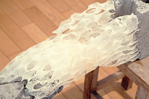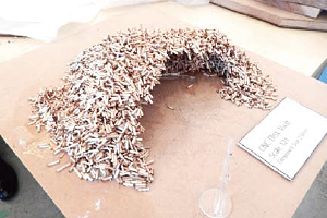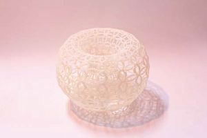 金田研究室はコンピュータで設計した複雑な形状の模型製作に3Dプリンターを使っている。網かごのような形、木の年輪のように何重にも重なっているもの、複雑に波打っているものなど、3Dプリンターがなければ決して作れなかったであろう模型が並ぶ。