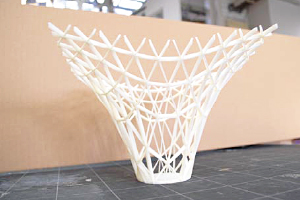 一方、小渕研究室は主に2つの使い方をした。1つは模型だ。具体的には、複雑な幾何学形状の構造物が、実際に物質として成立しているかどうかの確認と、プレゼンテーションとしての利用だ。作られた模型は自由曲面形状のものばかりで、その斬新さは目を見張るものがある。「型取りを行ったり、レーザーカット部材などから組み立てたりする方法と比べると、3Dプリンターのほうが作業が簡単で、完成度の面でも高いと感じました」(小渕氏)