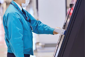 成田国際空港内には100台ほどのタッチパネルが設置されており、それらを除菌し利用者の安全・安心を守る。