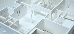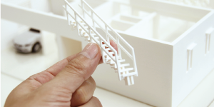 長年3D CGを使ってきた米谷氏。2011年11月、ついに新たなステージへの第一歩を踏み出す。3Dプリンターを導入したのだ。製品は「uPrint Plus(ユープリントプラス)」。最初に注目したのは製品開発のモックアップの造形だ。「3Dプリンターは、3D CG上のものが実際の形として出せます。モノを作る側としては実物で不具合を検証できるといったメリットがありますが、クライアントにとっては紙ではなくモノとして実際に触ることができるので、モノの大きさ、触感などがそのまま伝わり、反応がものすごくよくなりました。間違いなく以前より強く、正確に伝わるようになったと思います」 建築分野でも活躍する米谷氏は、建築用の模型にも3Dプリンターを使っている。通常、建築用の模型は素材を切って貼るという、プラモデル作りのような非常に細かい手作業が必要になるが、3Dプリンターなら一体成形できてしまう。たとえば格子が何十本と並ぶ開口部は、これまでの手作業だと膨大な時間がかかっていたが、3Dプリンターはデータを入れればそのまま一体成形できる。なおかつ垂直もきれいに出るため、スピードアップはもちろん、見た目としてきれいな模型ができるようになった。また、建築模型は曲線の表現が難しいが、米谷氏は曲線が自由に表現できる3Dプリンターの強みを活かし、ソファなどの家具や樹木なども造形するなど、さらに新たなことに次々とチャレンジしていく。