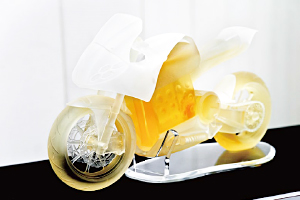 「あるデザイン学校の生徒が、雑誌が主催する『未来のバイク』というテーマのコンテストで、オートバイのデザインを出品して賞を取りました。その学校の先生が『せっかくだから形にしたい』と我々へ相談に来られ、3DCGデータをもとにデータ編集を行い3Dプリンターで出力しました。」(遠藤氏)