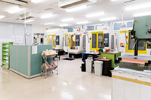 そう言われ、1つの部屋に案内された。部屋といってもテニスコートほどの大きさ。そこにさまざまな工作機械が置いてあり、社員が机の上で、目の前のモノをヤスリで削ったりしている。もう1つの部屋に案内される。15畳ほどの広さ。そこには大きな機械が8台も並び、そのすべてが稼動し音を立てている。