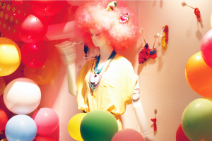 おそらく日本で、もしかしたら世界でも初めての光景かもしれない。 東京・池袋パルコのコンコースのショーウインドウ。 ここにカラフルな風船でデコレーションされた空間の中央部分に、 女性の服を着たマネキンが立っている。多くの人が何もないかのように通り過ぎていく。