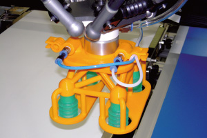 軽量化の恩恵は予想以上だった。「動きが機敏になり、すぐに止まることができたり急に回ることができるようになりました。ネジ穴加工も容易にでき、市販のパッドなども取り付けられる。食品衛生法をクリアできる造形樹脂ができれば用途は一気に広がる」