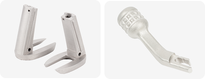 上図の部品は一般消費者向けのハンドル(左)と防衛産業向けテスト部品(右)であり、生産に取り組む前のプロトタイプ設計として、顧客が機能を探求できるように造形されています。