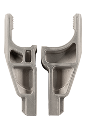 プレス加工用ロボットの先端治具において、3Dプリンティングは技術者が複数の形状違いの試作品をプリント、テストでき、速く最終治具形状に詰めていくことを可能にする。 速い試作品加工に加え、技術者がこれまで以上に複雑な形状、例えば先端治具の性能を高めるが 従来加工法では出来ず、複雑形状に伴う加工コストアップを避けて作ることを可能にする。Studioシステムを使うことで、同社の技術者は例えば内部冷却回路など、鋳造、切削など従来加工法では出来ない複雑形状で治工具や金型を製造することが出来る。