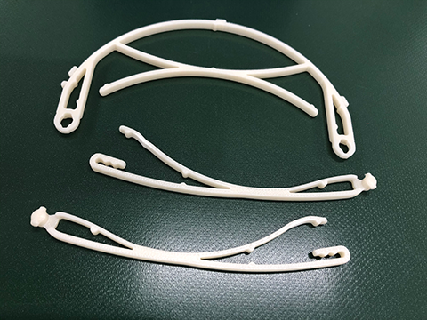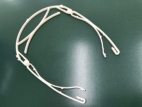 3Dプリント製ですので、肌に直接触れる部分はエッジやバリなど無いように仕上げてご利用ください。また、3Dプリンタ機材や材料によっては強度が足りずに折れてしまう場合もありますので、各自の責任でご利用ください。飛沫機能、形状、構造機能を保証するものではありませんのでご理解の上でダウンロードしてご利用ください。