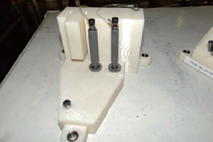 株式会社ヨロズエンジニアリング様の事例では、自動車のサスペンションなどの金属プレス部品の生産工場で、製品を置くことで形状や寸法を検査する冶具を従来はすべて金属の切削組み立てで作られていましたが、現在では大半の土台部分をStratasys Fortus3DプリンターとABS樹脂で作られています。