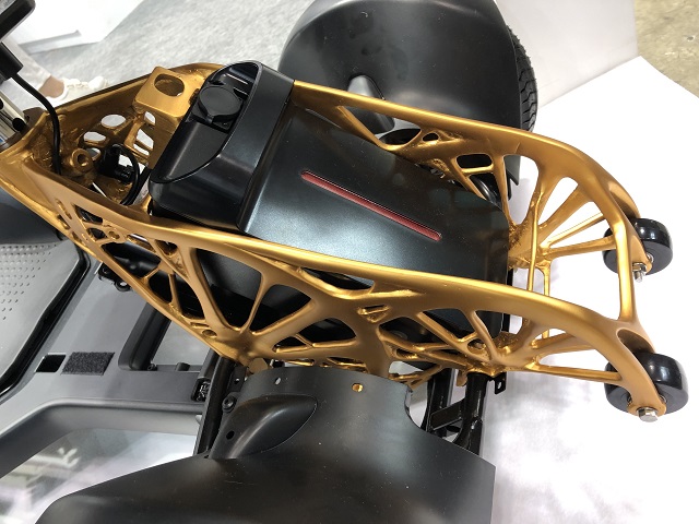 今回展示されていたサンプルで、実際に見られて最もよかったのは、オートデスク様のブースにあった、電動車いすのフレームでした。