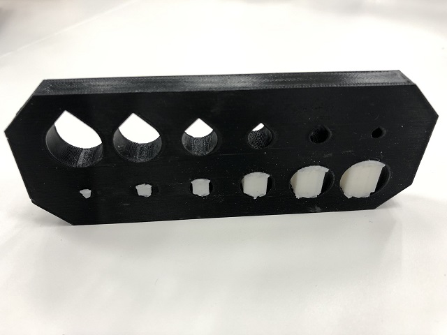弊社でもこのウエブサイト内で「知る学ぶ 3D虎の巻」の中でDfAMのヒントになる情報をお伝えしたり、FDMで水平方向丸穴を設計するときは、「なみだ型」にすれば内部にサポートが不要でコストや造形時間削減に効果があることなどは下のようなサンプルを使ってお伝えしたりしていますが、