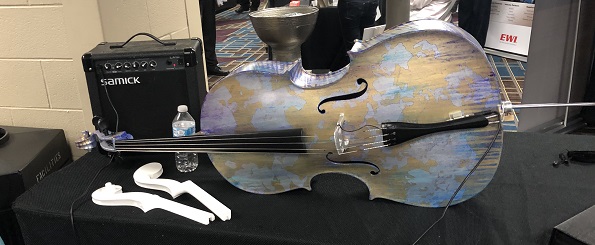 その他、一般公募による技術コンテストがあり、例えば仕上げ部門で1位を獲得されたのは、下のチェロでした。木製の楽器からすべての部品を3Dスキャニングにより3次元データを作り、Stratasys FDM ULTEM9085で造形、コーティング、塗装、接着組み立てで実際に弾ける楽器を作られたそうです。こういったことを時間と労力をかけて取り組まれた熱意も感じることができました。