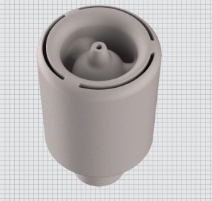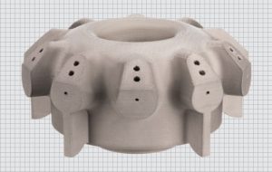 これは船舶の燃焼器の燃料と空気を混合して噴霧するノズルで、従来品は切削加工で作られていましたが、競争に勝つために常に新しく優れた製品を出すプレッシャーの中で、コンピュータによる流体解析結果から形状を考案、17-4PHでStudioにより作り実験、改良を短期に繰り返して最適な形状にたどり着き、完成しました。その結果、1個約5日で作ることが出来、また従来品の燃料消費率が120 kg/hrだったのを38 kg/hrまで減らせ、1隻に3台搭載されており、年間の燃料コストを$90,000から$160,000節約できるそうです。「従来はドリル加工の丸直線穴で出来る限られた条件でしか設計できなった制限をAMにより無くすことが出来る。」とゼネラルマネージャーは述べています。
