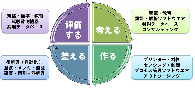 これからも装置、材料、用途については「金属」への関心の高さが続くと思いますが、樹脂もこれから新しい材料や工法が出てくることや、SGDs対応ニーズが増えることで、再び関心が高まるのではないかと考えています。また、3Dプリンティングによる製造が広がってくると、「考える」「作る」だけでなく「整える」「評価する」への関心と共に、工程管理なども含め、関心の範囲は広がっていくと考えています。