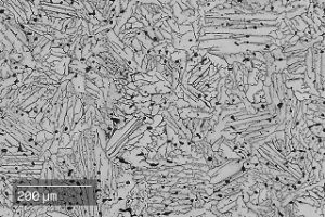 それに対し、Desktop Metal社が開発してStudioシステムで採用たBMD方式+Ti64用に開発された独自焼結方法により、3Dプリント造形→溶媒脱脂→電気炉での焼結炉内冷却の条件設定と動作制御が高度に自動化された3プロセスで、人の技能に左右されず、かつ下記の拡大写真のように、偏りの少ない分散結晶構造のチタン合金を作ることが出来るだけでなく、切削仕上げでも必要な個所だけで済み、加工のために捨てる材料は少なくできることで「加工性や高価格の短所」の改善が期待できます。