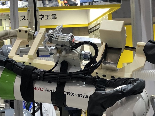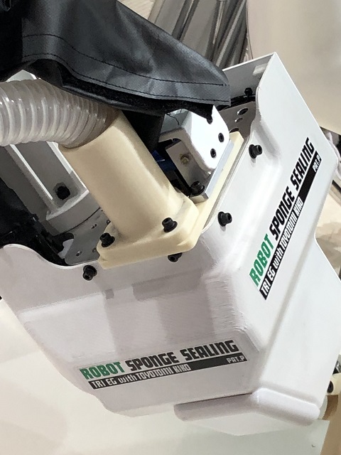 また、弊社のユーザー事例でもご紹介しているトライエンジニアリング様は、昨年11月に名古屋の展示会で発表された、シールテープを複雑な立体に貼るロボットの実演展示をされ、そこには3Dプリンティングによる樹脂の実用部品が多数装着されていました。これまで熟練した人でないとできなかった作業で、ロボットでも容易ではないそうですが、「人不足への対策」需要の高まりからか、予想以上に検討依頼が多く来ているそうです。