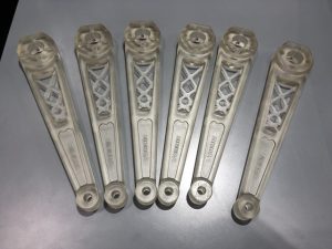 前述の収穫ロボットのトマトをつかむグリッパー、カメラやセンサーホルダーなど、その他多くのロボットグリッパーや運んだものを置くフィクスチャに樹脂FDM製実用パーツが多く見られました。これも自働化、協働化で掴むモノ、掴み方に合った最適形状、軽量と強度の両立、安全のため角の丸い形状などが求められ、それには従来の金属・樹脂ブロックからの切削組み立てより、3Dプリンティングでの設計製造とカイゼンが適していて、それらが自働化への波を広げる後押しになっていると考えています。
