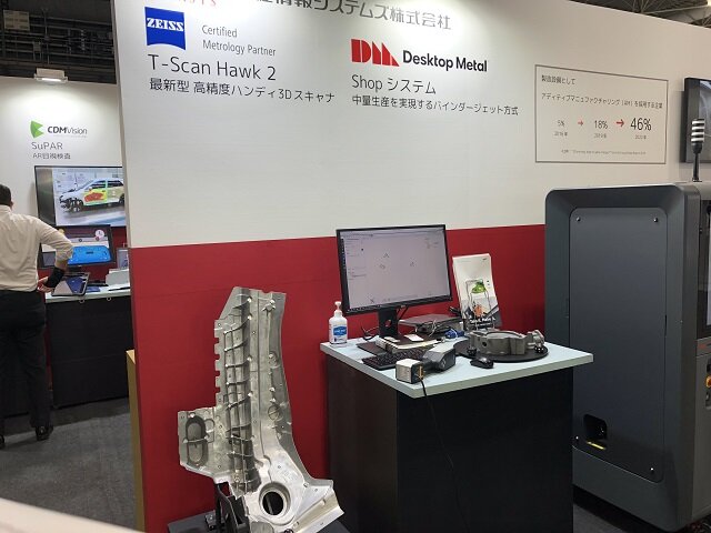 前回のコラムでお伝えしました、「第26回 関西 設計・製造ソリューション展(DMS関西)」に弊社丸紅情報システムズ株式会社が出展し、筆者も参加してきました。ブースでは、バインダージェット方式金属3Dプリンター Shopシステム (Desktop Metal社) のプリンターの他に、最新型ハンディスキャナ T-SCAN hawk2 (ZEISS社) やAR目視検査 SuPAR (CDMVision社) など、新しいデジタルツール製品も展示紹介しました。