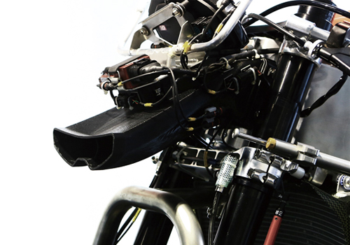 3Dプリンターで作った試作品で、実際の部品と組付けの確認を行うことができます。強度のある材料も使えるので、耐熱・耐久性のテストを行うこともできます。