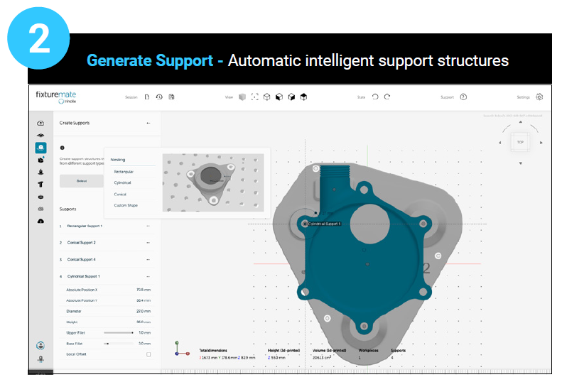 さらに、ドイツのtrinckle 3D社が開発した革新的ツール「fixturemate」に対応。洗練されたアルゴリズムが複雑な治具設計ワークフローを自動・最適化し、特別なCAD知識や豊富な実務経験がなくても、迅速かつ直感的にプロ水準の治具を設計・構成可能です。