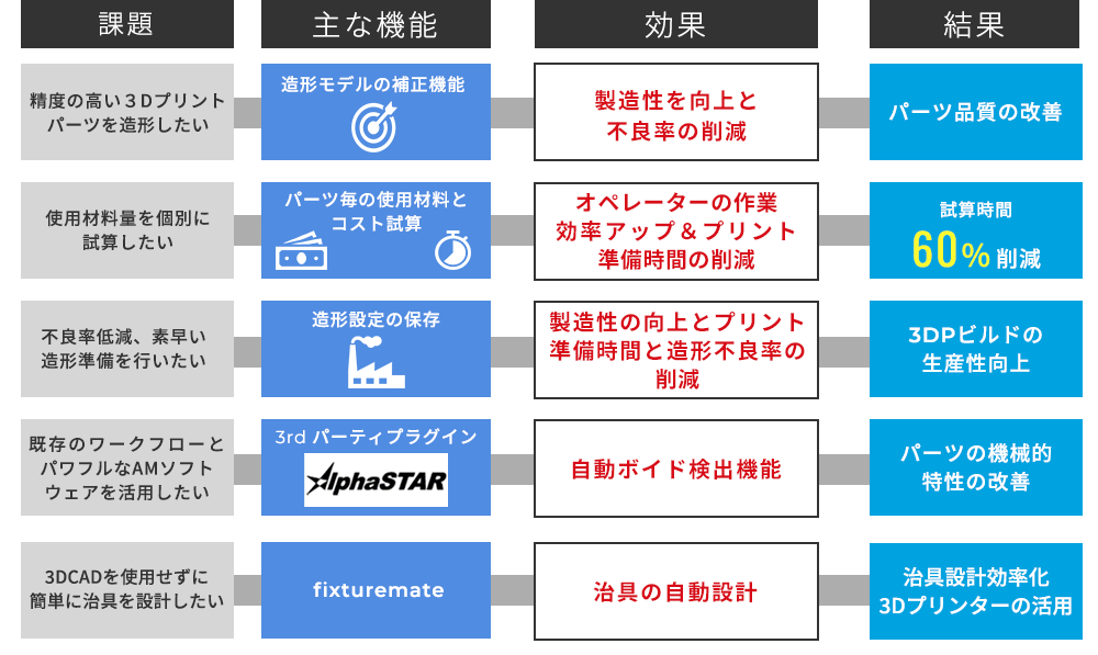 GrabCAD Print Standardに含まれる機能全てと、さらに自動化プロセス、トレーサビリティ、パーツごとの見積もりなど、3Dプリント活用をさらに一歩前へ進めながら、工数やコスト削減 に貢献する機能を提供し AM製造を効率化 します。