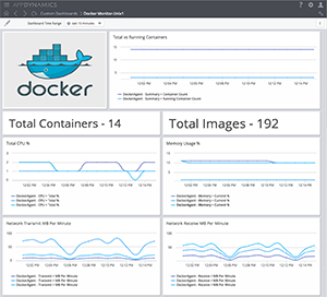 AppDynamics は、ドッカー・モニタリング・ソリューションを使用してドッカー環境において展開され、複数の分離された (ミクロ) サービスで作られたアプリケーションやビジネストランザクションへの可視性を提供します。 AppDynamics のドッカー・モニタリング拡張 は、以下の様々なメトリクスを監視してレポートを行います:コンテナ総数、実行中のコンテナ、画像、CPU 使用率、メモリ使用率、ネットトラフィックなど。