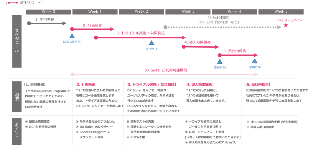 費用対効果検証フォーマットを用いて本導入への決裁サポートも完備