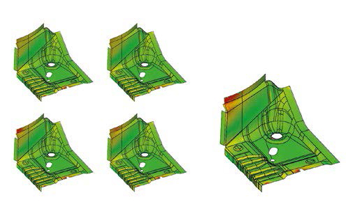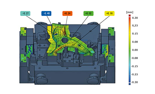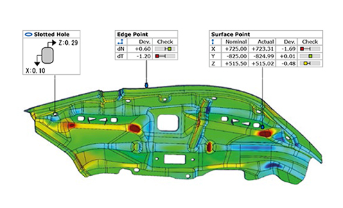 全範囲のコンポーネント測定により、未チェック箇所がゼロに。長い表形式の検査レポートの代わりに理解しやすい結果を提示することにより、金型形状 (スプリングバック、トリミング) ならびに機械・プロセスパラメータ (潤滑、押さえ力、閉力) の修正値を迅速に決定することが可能となっています。