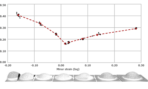 - ISO 12004準拠する材料の典型的な成形限界曲線(FLC)