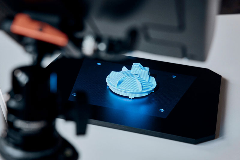 新しいGOM Scan 1のプロジェクションテクノロジーには、ブルーライトテクノロジーを採用しています。これは狭帯域のブルーライトを利用しており、画像取得中に周囲から影響を受ける干渉光を排他することができます。光源が強力であるため、測定が難しい表面でも短時間で測定できます。