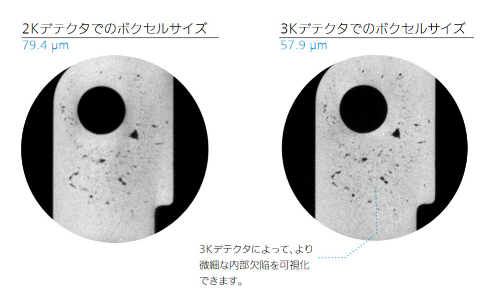 G3では最新の3Kデテクタを搭載しており、よりきめ細かいボリュームデータを取得することが可能です。例)旧製品では判別が困難であった内部欠陥をよりクリアに捉えることが可能です。