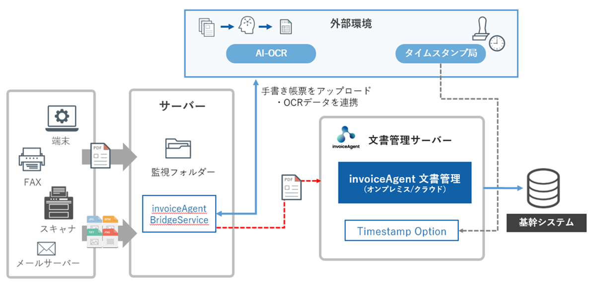 ※invoiceAgent Bridge Serviceはお客様環境にインストールするモジュールです