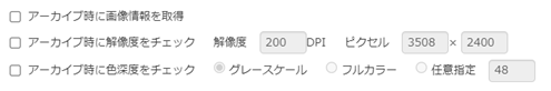 保存した画像の解像度、階調、大きさ情報の保存が可能です。画像の不適合時はアーカイブエラーにすることができます。
