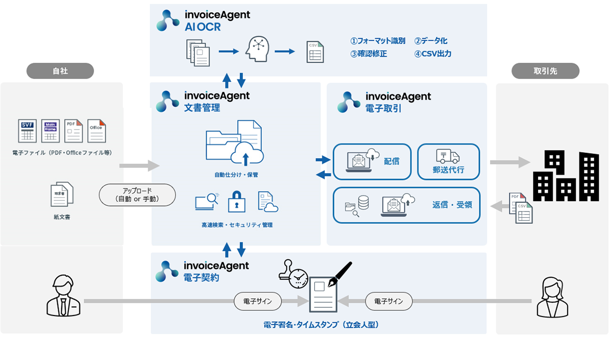 既存帳票フォーマットはそのまま取引先との送受信から管理までを一括で行えるクラウド型の電子取引ソリューション。
