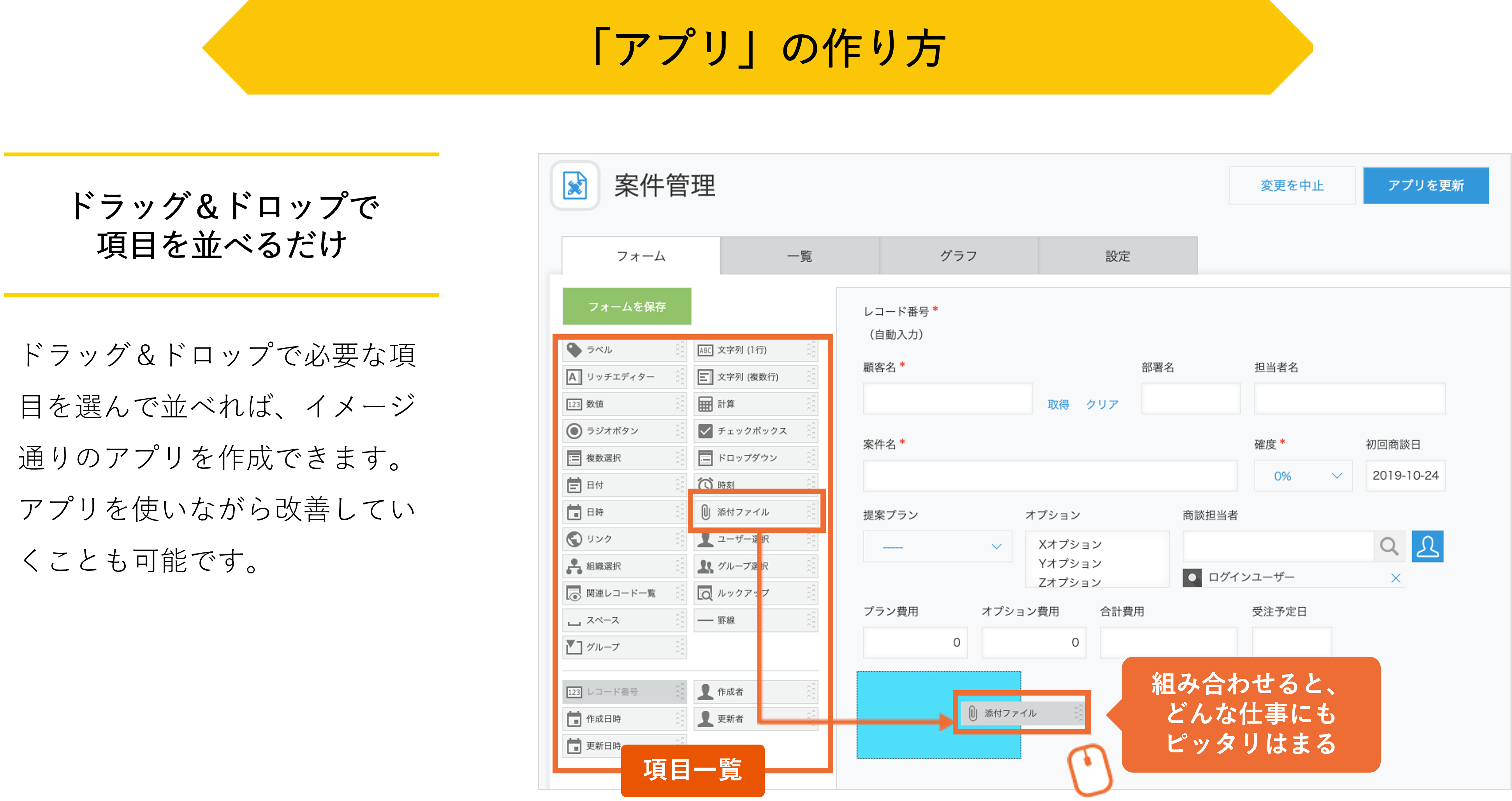 業務に合わせたアプリを作成することが可能