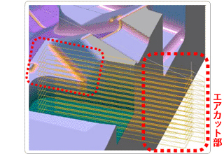 ストックモデルを参照し、NCデータに含まれる不要なエアカット部を自動削除