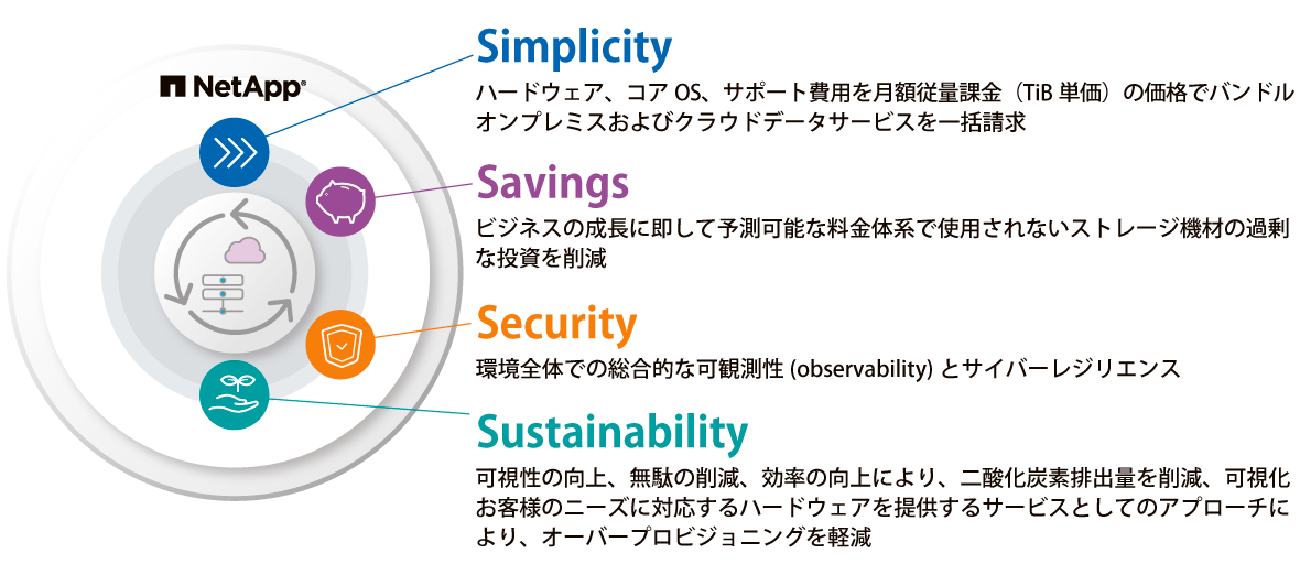 | 資産を持ちたくない(OPEX) | ハードウェアはネットアップ資産 お客様はサービスとして利用 |