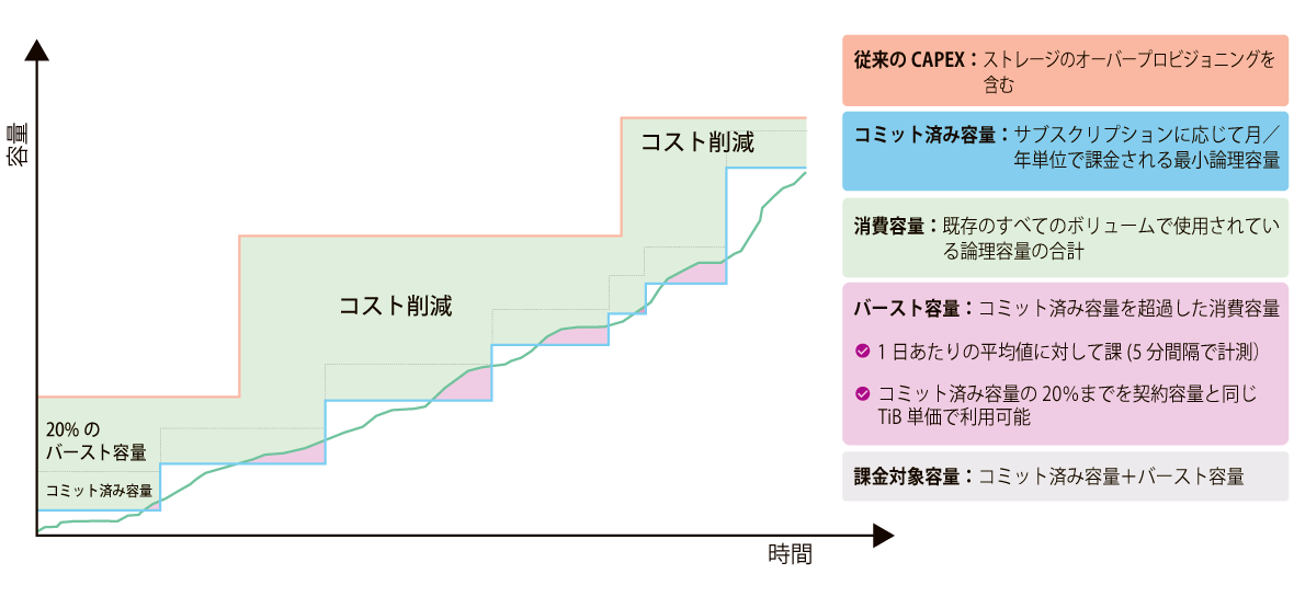 | コミット/従量課金の容量基準 | 論理容量 または物理容量 |