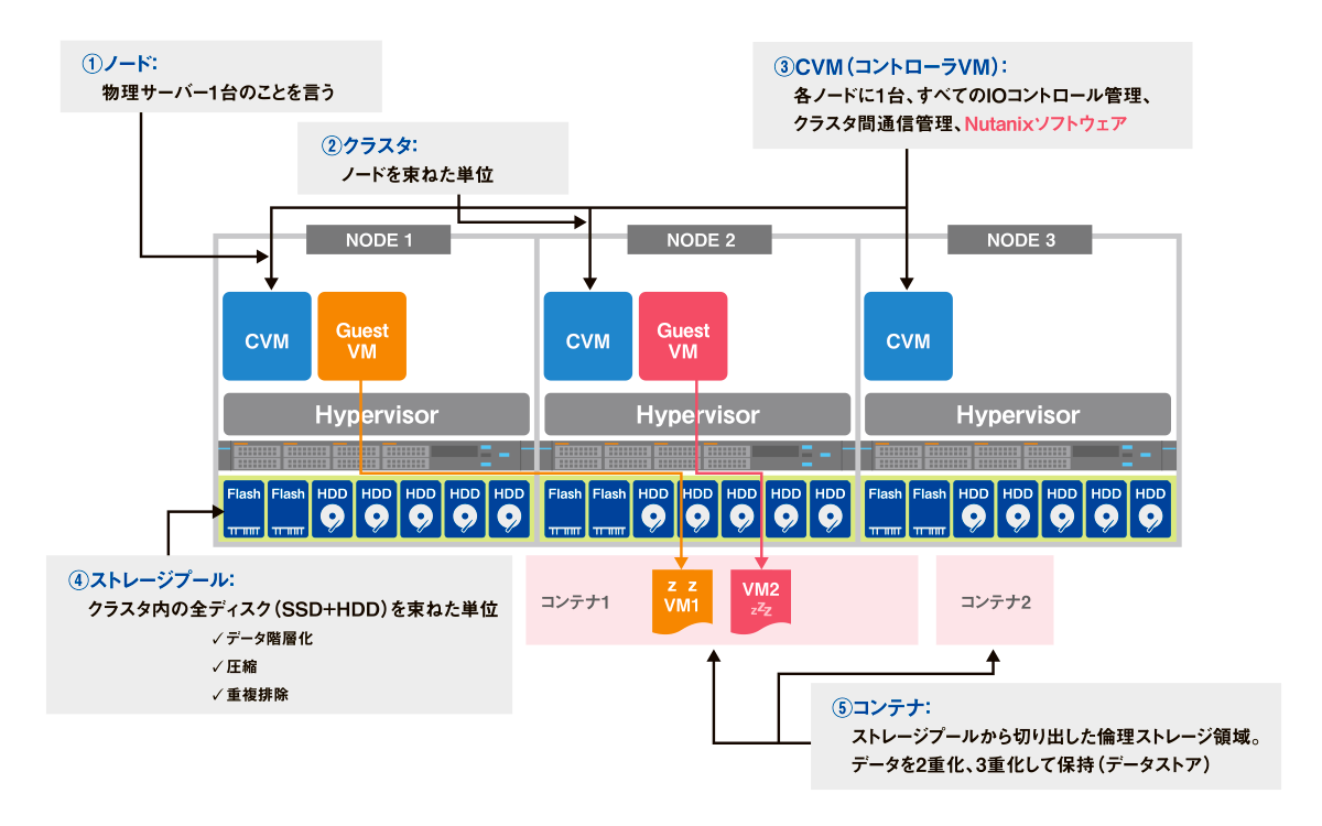 - パフォーマンス向上のため、VMとそのデータは同じノードに配置