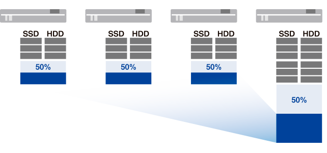 - ストレージ容量の大きいノードが混在したクラスタ構成可能